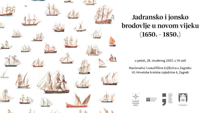 Hrvatski povijesni muzej poziva vas na otvorenje izložbe Jadransko i jonsko brodovlje u novom vijeku (1650. – 1850.), koja će se održati u Nacionalnoj i sveučilišnoj knjižnici u Zagrebu od 28. studenoga do 12. prosinca 2025. Izložba donosi rezultate višegodišnjeg istraživanja povjesničarke Zrinke Podhraški Čizmek, utemeljenog na iznimno bogatoj ostavštini hrvatskog povjesničara i publicista Nikole Čolaka (Janjevo, 1914. – Padova, 1996.), stručnjaka za povijest hrvatskog trgovačkog pomorstva.
